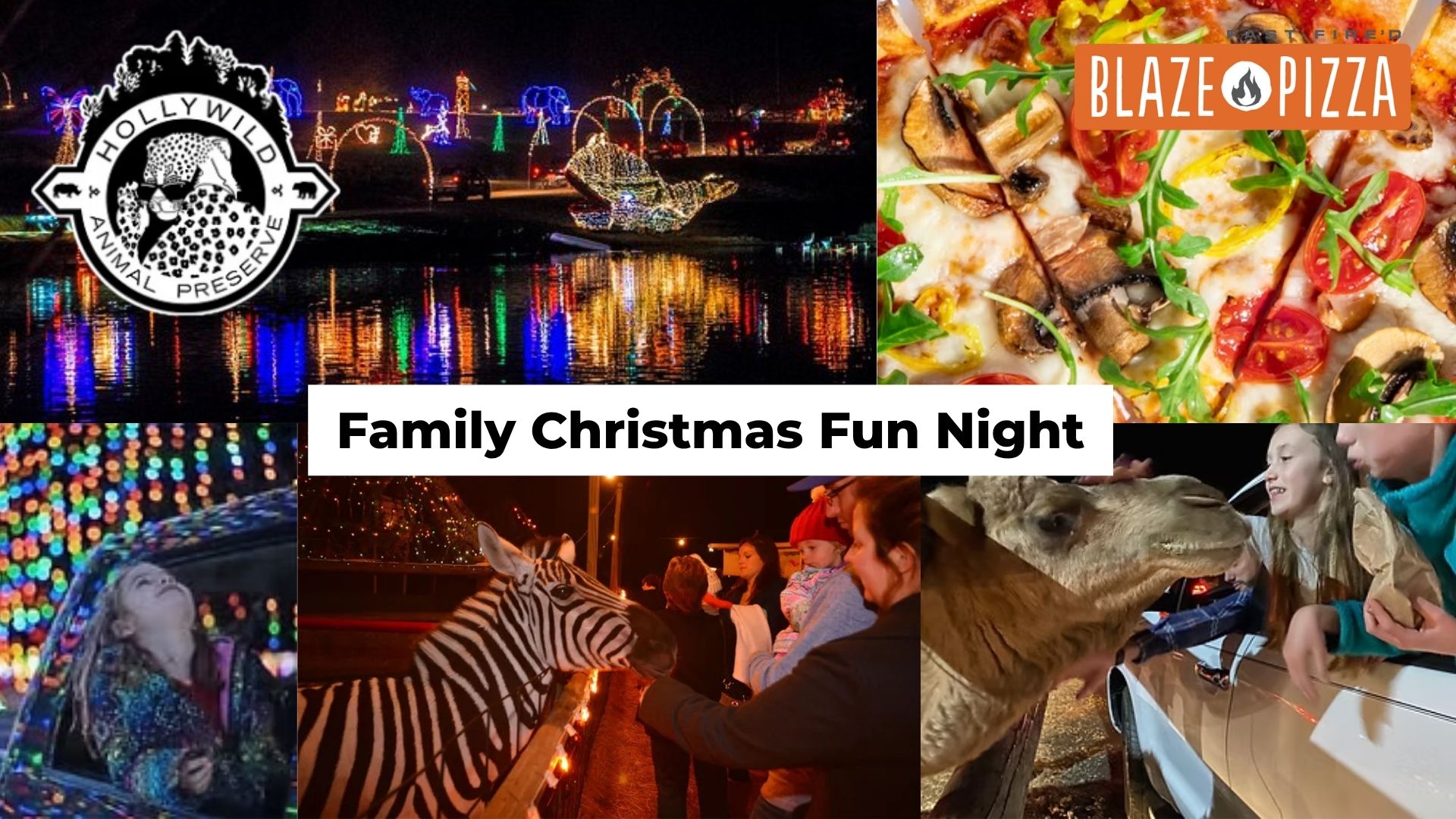 Passes for four to the Hollywild “Magic of Lights” including Drive Through, the Deer Forest, and Santa’s Village, plus four (4) free 11″ pizza cards at Blaze Pizza in Boiling Springs, SC. This pass entitles four guests to enjoy the Magic of Lights experience including: