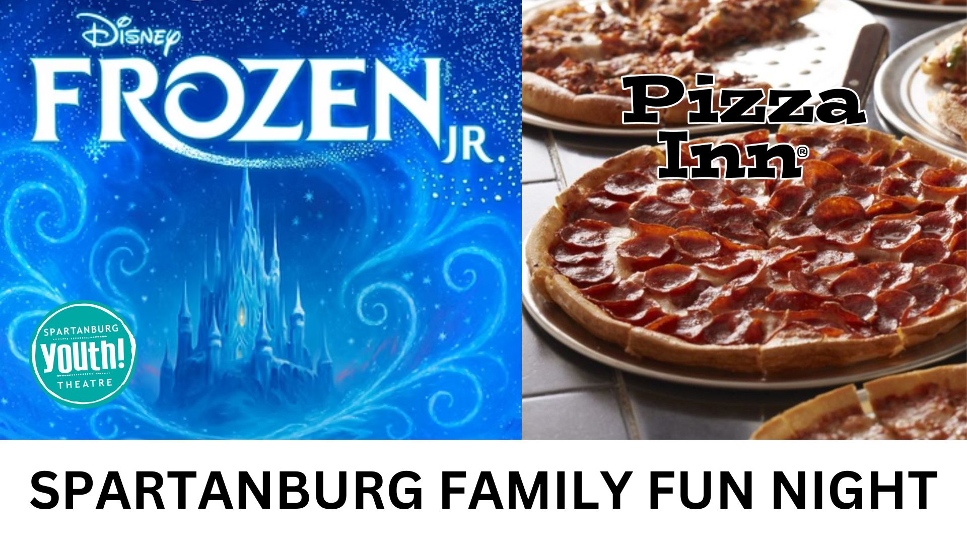 Four tickets to the Spartanburg Youth Theatre production of Frozen, Jr. (December 5-7, 2025), plus four (4) free buffet cards from Pizza Inn.